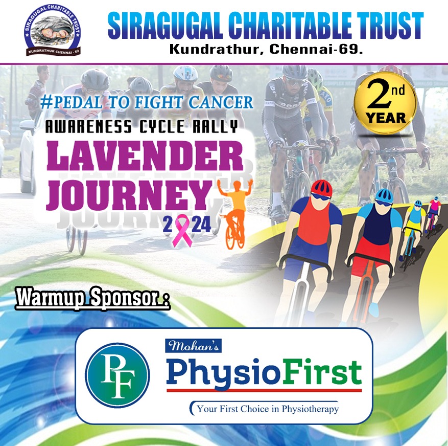 நமது சிறகுகள் தொண்டு நிறுவனம் நடத்தும் குழந்தை புற்றுநோய் விழிப்புணர்வுக்காக 2- ஆம் ஆண்டு LAVENDER JOURNEY 🎗️ 2024 மிதிவண்டிப் பேரணி (cycle rally) நடத்த திட்டமிடப்பட்டுள்ளது வருகின்ற மே மாதம் 05-ஆம் தேதி நடத்தப்படுகிறது என்பதை பெருமையுடன் தெரிவித்துக் கொள்கிறோம் இதில் அனைத்து உறுப்பினர்களும் உடனிருந்து இந்த பேரணியை நடத்தித் தருமாறு தங்களை அன்போடு கேட்டுக்கொள்கிறோம்