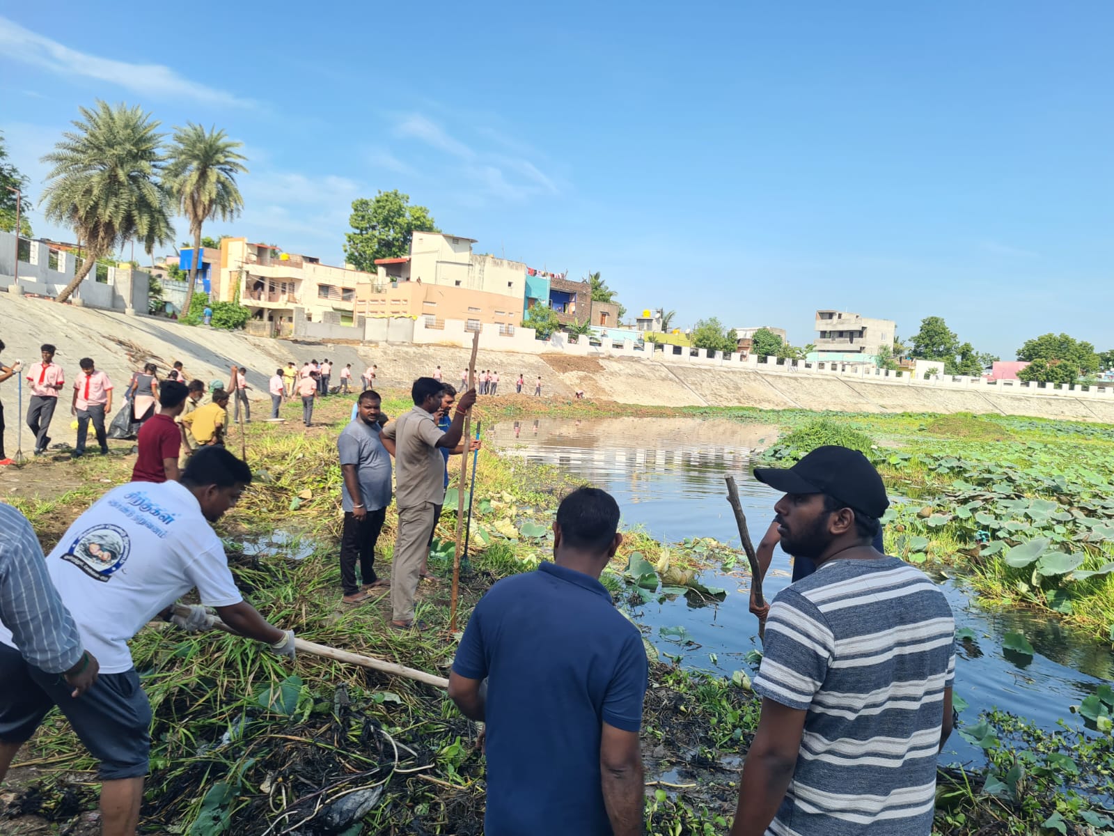 குன்றத்தூர் பாலவராயன் குளம் தூய்மை செய்யும் பணி